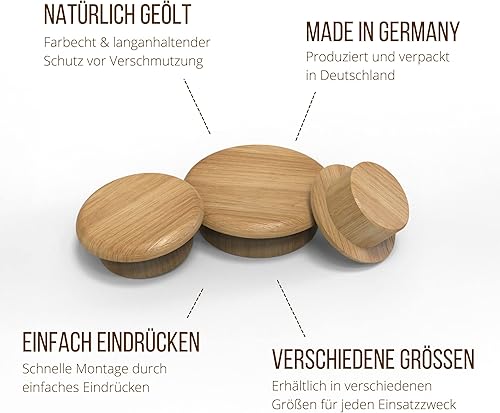 Heimatspäne Abdeckkappen für Bohrlöcher Eiche in verschiedenen Größen [8 Stück] – Schraubenabdeckung Holz natürlich geölt zum Eindrücken – Bohrloch Abdeckkappen als Blindstopfen [Ø12mm]