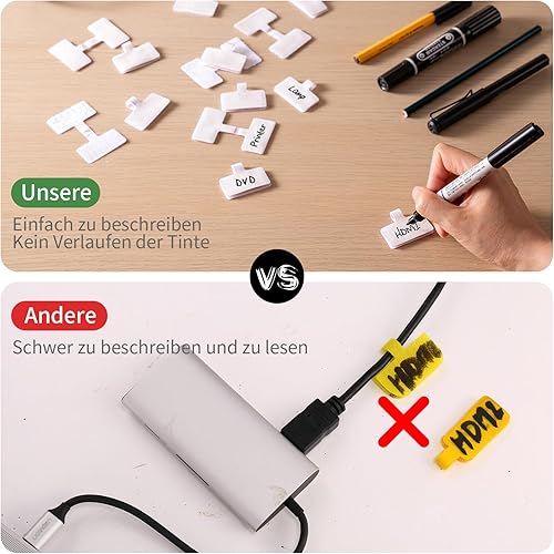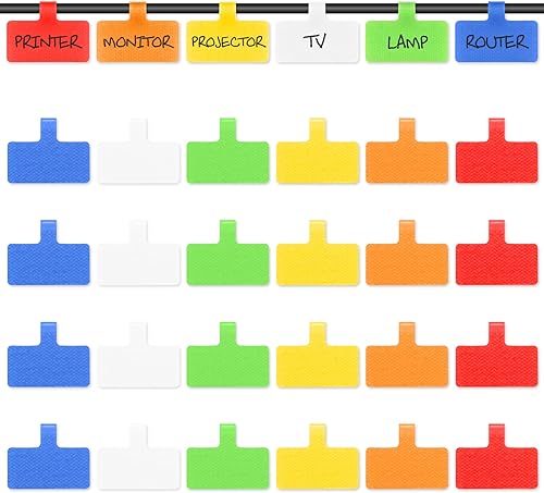 Trilancer Kabeletiketten Kabel Beschriftung Wiederverwendbar, 24 St Mehrfarbige Beschreibbare Kabel-Etiketten - 4 cm x 2 cm Schreibfläche Zum Identifizierung von Kabel, Groß. Drähten. Vielseitige