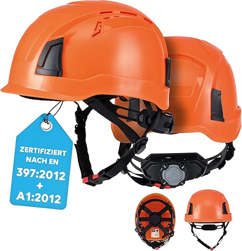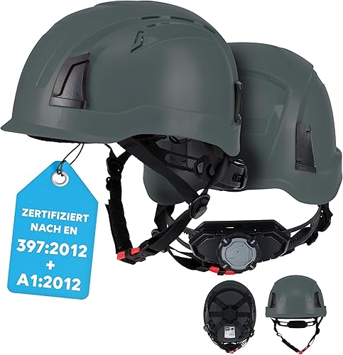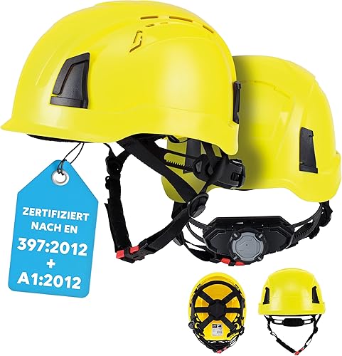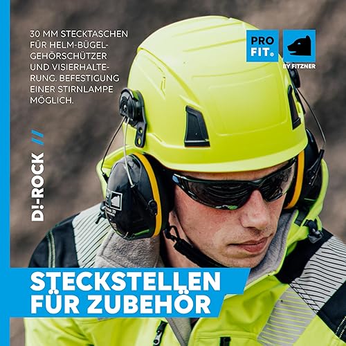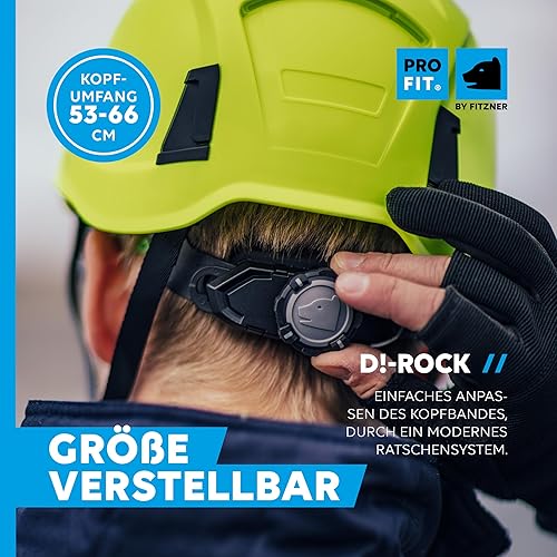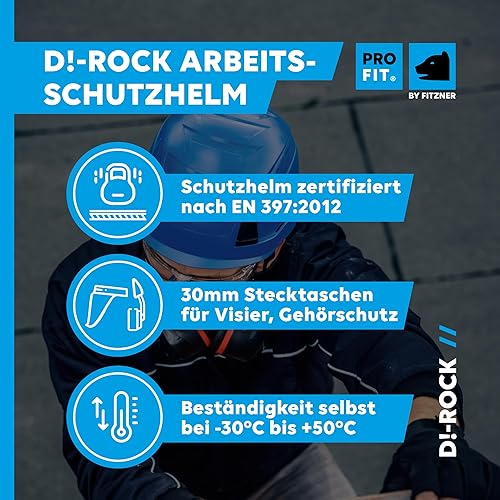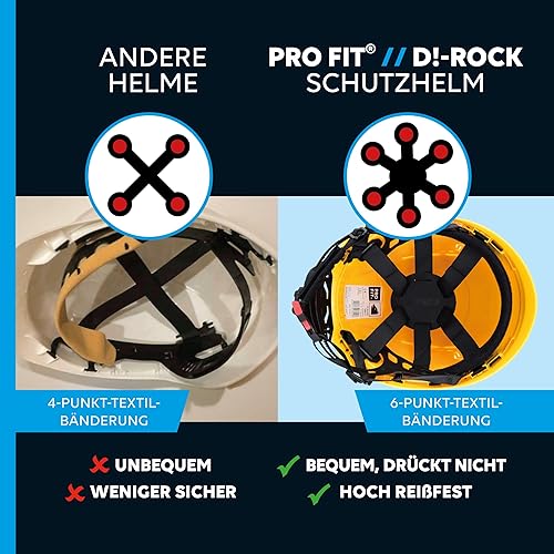PRO FIT Arbeitsschutzhelm D!-Rock – Robuster Schutzhelm, Sicherheitshelm, Belüfteter Bauhelm, Anpassbares Kopfband & Kinnriemen, Arbeitshelm