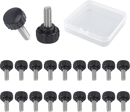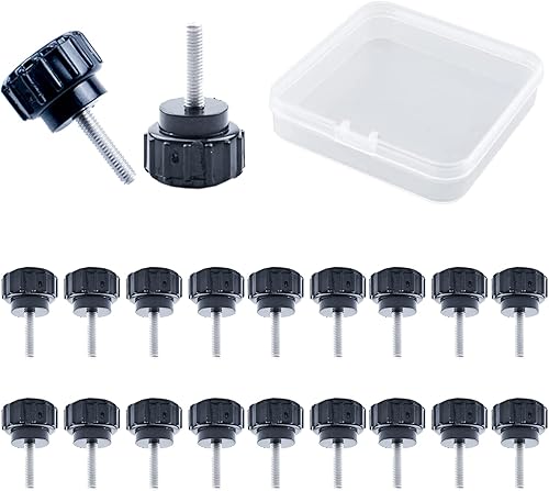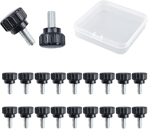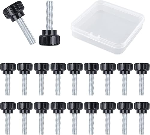 MOROBOR Rändelschraube, 20 Stück, M4 x 20 mm, Karbonstahl, Gewinde, gerändelte Rändelschraube, Griffknöpfe, Rändelschraube für Maschinen mit Aufbewahrungskoffer