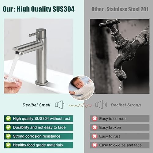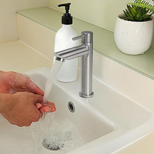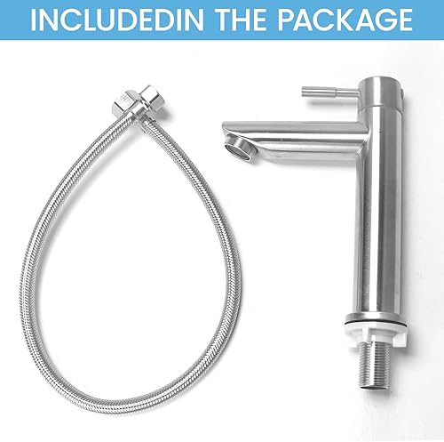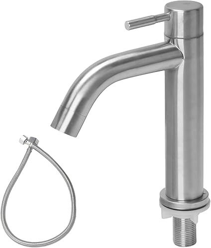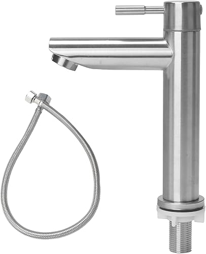 Minhua Waschtischarmatur Edelstahl Kaltwasserhahn Gäste WC mit Schlauch, Kaltwasser Armatur, Wasserhahn Bad Kaltwasser, Kaltwasser Armaturen mit Auslauf (Silber)