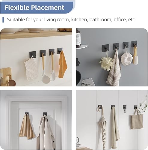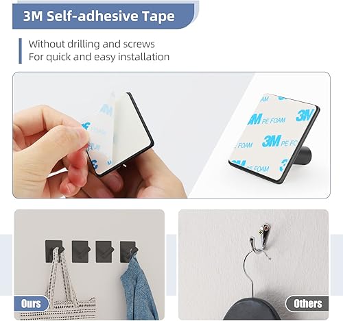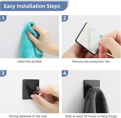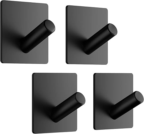 Dripex Haken Selbstklebend Klebehaken Edelstahl Ohne Bohren Handtuchhaken für Küche und Bad Schwarz 2 Stück