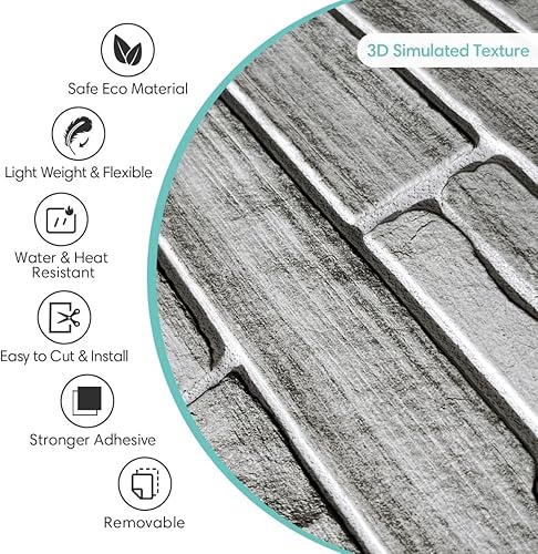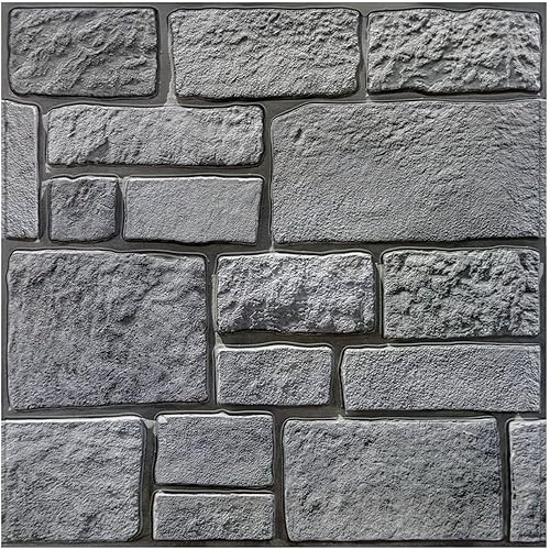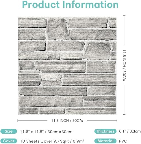 Commomy 10 Stück 3D Wandpaneele Steinoptik Selbstklebend, 30x30cm, Wandverkleidung Selbstklebend Steinoptik, PVC 3D Wall Panels für Innenwanddekoration Wohnzimmer Küche Schlafzimmer