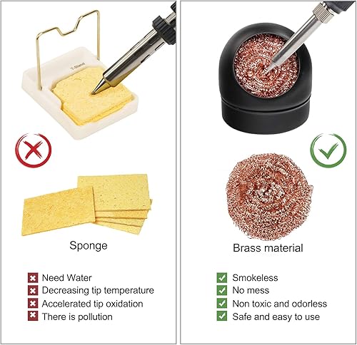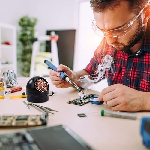 Lötspitzenreiniger Lötkolben-Spitze Reiniger und Halter, Weich Gewickelte Messing-Spitzenreiniger-Kit Reinigungsdraht Scrubber Reiniger (4 Messingkugeln, Schwarz)
