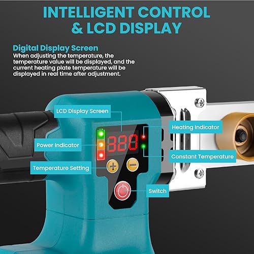 ONEVAN Muffenschweissgerät PPR Rohr Schweißgerät, 0-320°C Einstellbar Stumpfschweißgerät mit Digitalanzeige, Rohrschweißgerät für PPR PE PVC Rohre, Kompatibel mit Makita 18V (ohne Batterie)