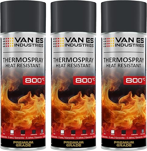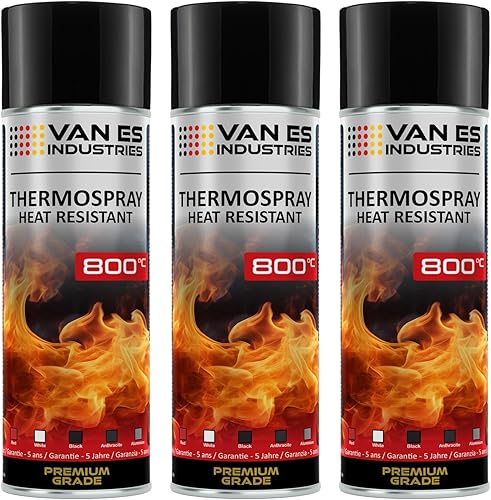 Ofenlack Ofenfarbe Spray 3x 400ml hitzebeständige Thermofarbe 800°C (Ofenlack Schwarz-Matt)