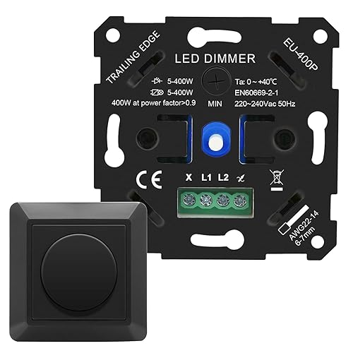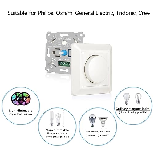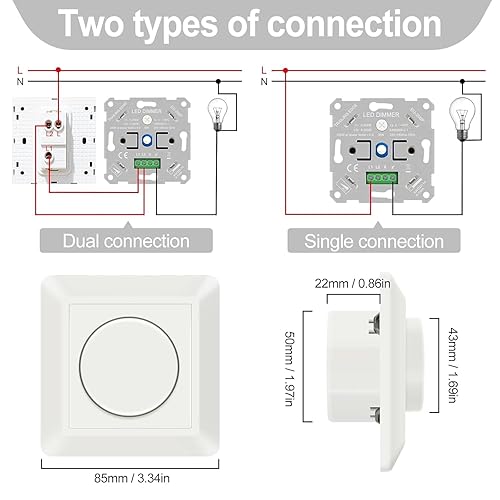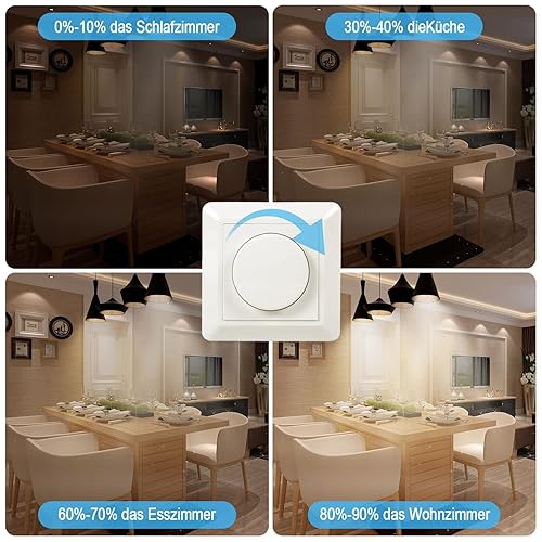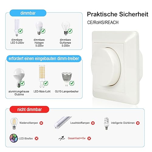VIPMOON Dimmer Schalter 220-240V Dimmer für Led Lampen 5-200W Push-On/Off Rotary Phasenabschnittsdimmer für dimmbare LED Lampen, Glühlampe und Halogenlampe, Weiß