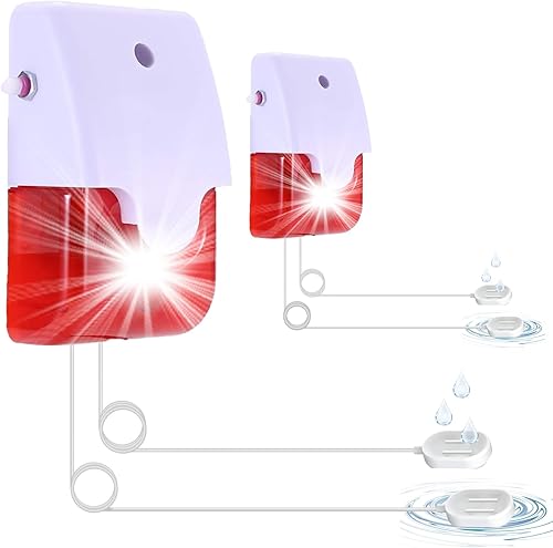 Wasser-Leck-Detektor mit Dual-Sonde, 5M pro Sonde Kabel, Max 120 dB einstellbare akustische & visuelle Wasser-Sensor, Wasser-Alarm für Haus Wasser-Tank/Aquarium/Schwimmbad/Basement/Untergrund/Flut