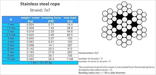 10m - 3mm Drahtseil EDELSTAHL, Schwarz PVC Stahlseil Ummantelt, Draht Seil mit 4 Drahtseilklemmen - 7x7