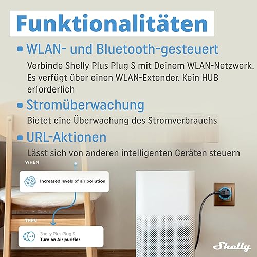 Shelly Plus Plug S Schwarz - WLAN-gesteuerter Steckdose mit Strommessung - 2500 W, 16A | iOS Android APP Fernsteuerung | Google Home und Alexa Zubehör | Sprachsteuerung & Timer