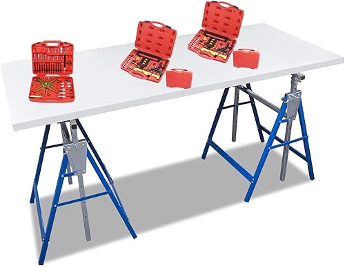 Cecaylie 2x Gerüstbock Klappbock Tragkraft 200 kg 7-fach Arbeitsbock Höhenverstellbar 82-130 cm Teleskop-Arbeitsbock Gestelle Klappbock Metall Unterstellbock Arbeitsbock Gerüste