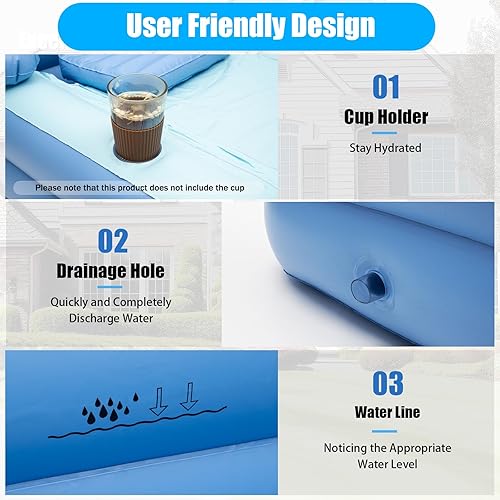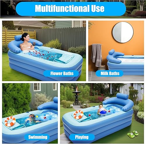 Faltbare Badewanne für Erwachsene, 160 * 84 * 64cm Blaue Freistehende Aufblasbare Badewanne für Duschen im Freien, Kann als Dusche Heißes Bad Eisbad
