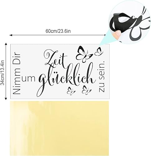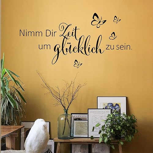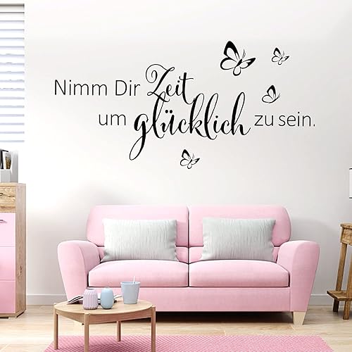 Schwarz Wandtattoo Schmetterlinge für Wanddeko,Sprüche Zitate Nimm Dir Zeit Um Glücklich Zu Sein Wandsticker Wandaufkleber Kleben Aufkleber Wandbilder für Schlafzimmer Wohnzimmer Vorraum Flur Fenster