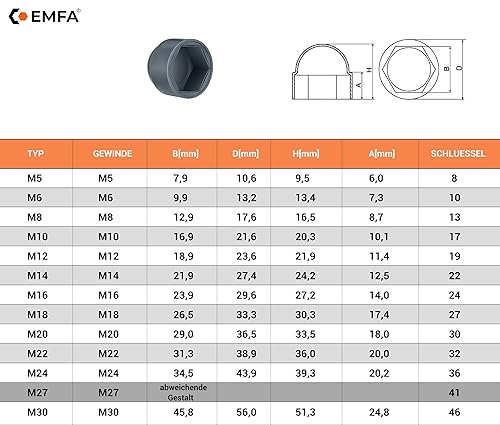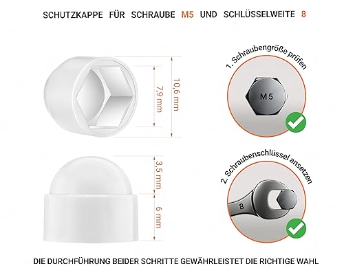 EMFA Sechskant Schutzkappen M10 für Schrauben (Schlüsselweite 17) Weiß 100 Stück Schraubenkappen Schutzkappen für Muttern M10