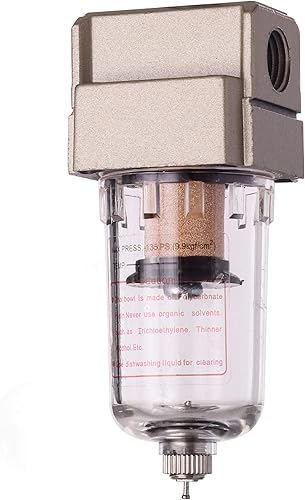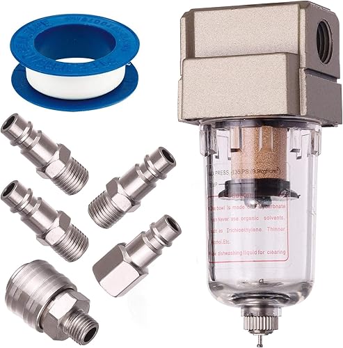 Luftfilter, Wasser- und Ölabscheider, 1/4'-Aschluss, im Set mit 4 Schnellverbindern und einem Teflonband, zum Anbau an Kompressoren oder als Zwischenschaltung in der Druckluftleitung