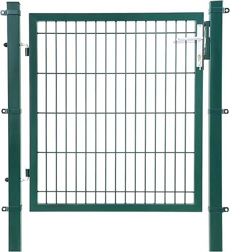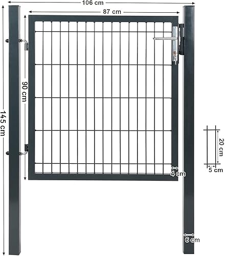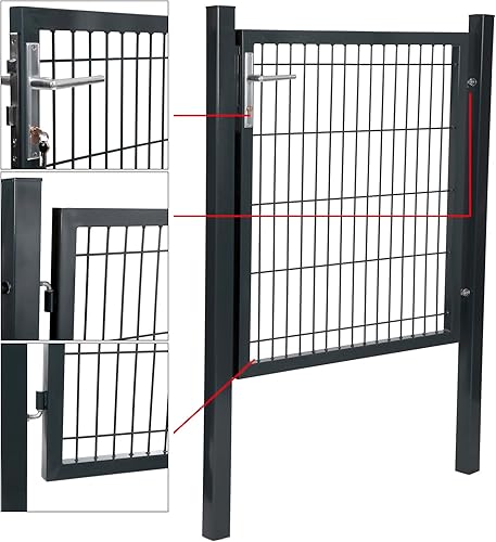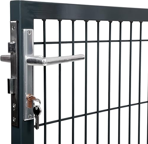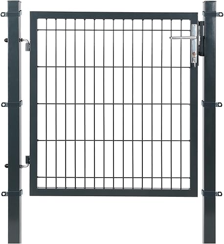 SONGMICS Gartentor aus verzinktem Stahl, Gartentür, Zauntor, Hoftor, mit Schloss, Schlüssel und Türklinke, Tür 106 x 90 cm (B x H), rechteckiges Rohr, grau GGD250G