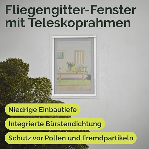 Nematek Teleskop Fliegengitter Fenster (max. 110 x 140 cm) ohne Sägen & Bohren - Insektenschutz Fenster in anthrazit - Teleskop Fenster Fliegengitter mit Premium-Polyester Gewebe & Bürstendichtung