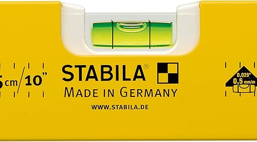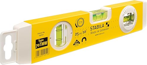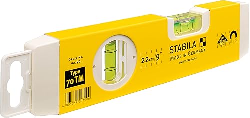 STABILA Torpedo-Wasserwaage Type 70 TM, 22 cm, leichtes Alu-Profil, Magnetstreifen, 1 Horizontal-Libelle, 1 Vertikal-Libelle, Made in Germany, Gelb