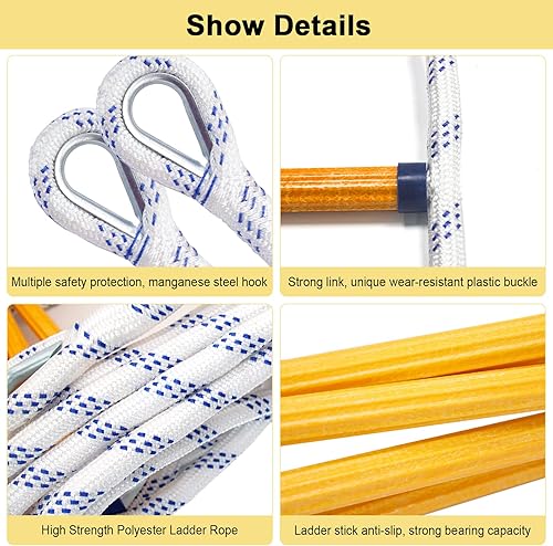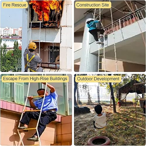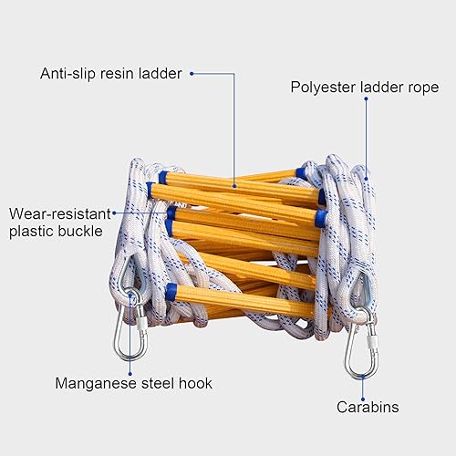 5M Strickleiter, Strickleiter Feuerfeste Rettungsleiter, Notausgangsleiter Feuerleiter Sicherheitsleitern mit Karabinern, Schwer Entflammbare Feuerfeste Rettungsleiter für Outdoor Balkon Fenster (5M)