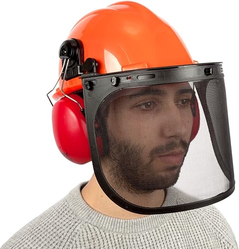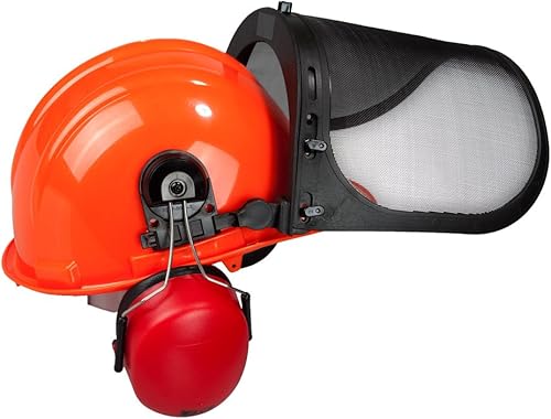 Viwanda oranger Forsthelm Forstschutzhelm mit Maschenvisier und Kapselgehörschützer | Kettensäge Sicherheitshelm | Netzvisier