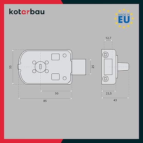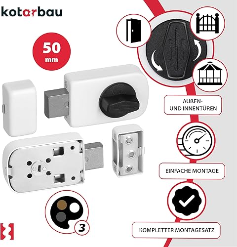 KOTARBAU® Zusatzschloss 3 Farben Kastenschloss Türzusatzschloss Türschloss Schloss Drehknauf Zusatzsicherung Kastenzusatzschloss ohne Zylinder (Braun) 50 mm