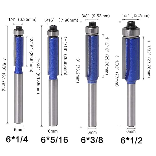 BIGP 4Pcs 6mm Schaft Bündigfräser, 1/4' 5/16' 3/8' 1/2' Schneiden Durchmesser Holz Fräser Router Bit Oberfräser Holzbearbeitung Fräswerkzeuge