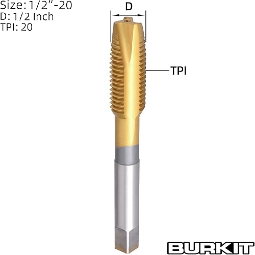 Burkit 1/2'-20 UNF Spiralspitze Gewindebohrer, HSS Titanbeschichtung Spiralspitze Gewindebohrer 1/2 x 20 UNF