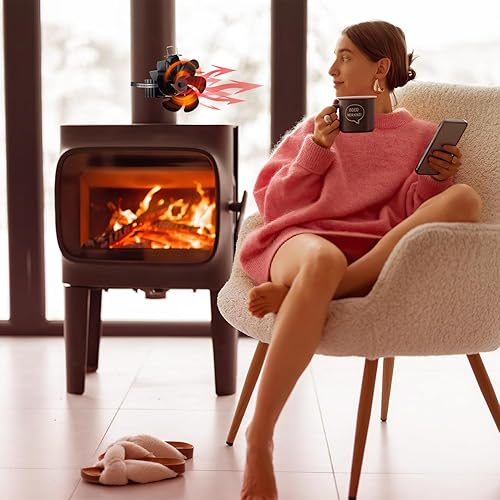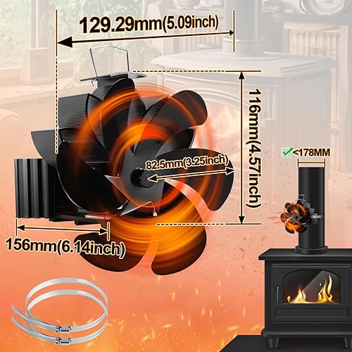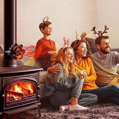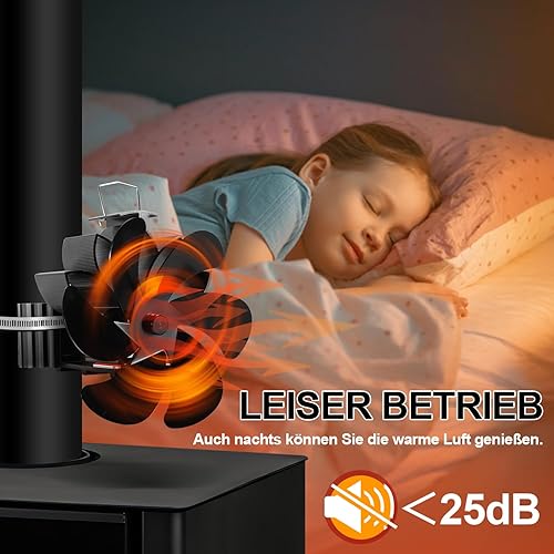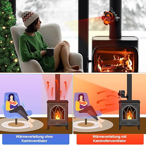 Vigevee Kaminventilator 6-Blättern Magnetisch Ofenventilator ohne Strom Wärmebetriebener Kaminlüfter Stromloser Hitzebetrieben Kamin Ventilator Leiser Ofen mit 2pcs Ersatzteil Ring
