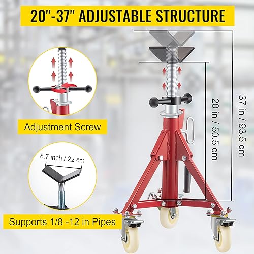 VEVOR Rohrständer 400 kg Kapazität, Rohrstütze mit 2-Kugel-Transfer V-Kopf, Rohrbock höhenverstellbar 20-37 Zoll Höhe, einklappbarer Rohrständer für Gewindeschneidmaschinen Walznuten