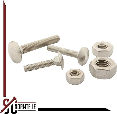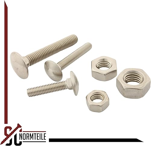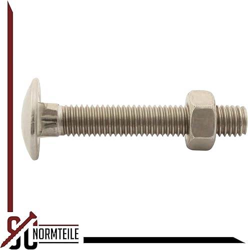 Flachrundschrauben/Schlossschrauben mit Sechskantmuttern - M6x40 - (25 Stück) - Vollgewinde - DIN 603 / DIN 934 - Edelstahl A2 (V2A) - SC603 / SC934