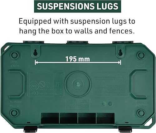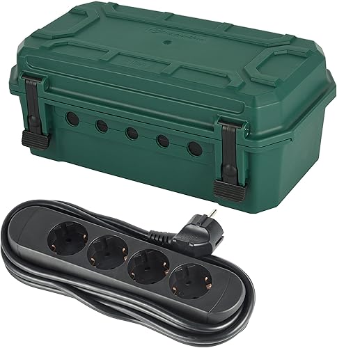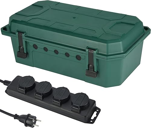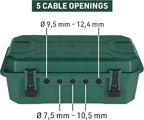 Electraline 300180 wasserdichte Schutzbox für Elektroanschlüsse im Freien wetterfest IP54 mit 5 Kabelausgängen (von 7,5 mm bis 12,4 mm), Abmessung 390x228x138 mm, Grun, Leer X-Large