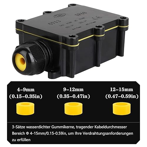 SZFUDIGO Wasserdichte Abzweigdose für den Außenbereich, IP68, 2-Wege-Stecker-Draht, externe elektrische Abzweigdose, Kabelverbinder, Drahtdurchmesser 4–15 mm