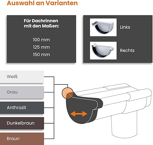 INEFA Dachrinnen Endstück halbrund, NW 100 rechts, Anthrazit, PVC, Dachrinnenzubehör, einfache Steckmontage, Made in Germany