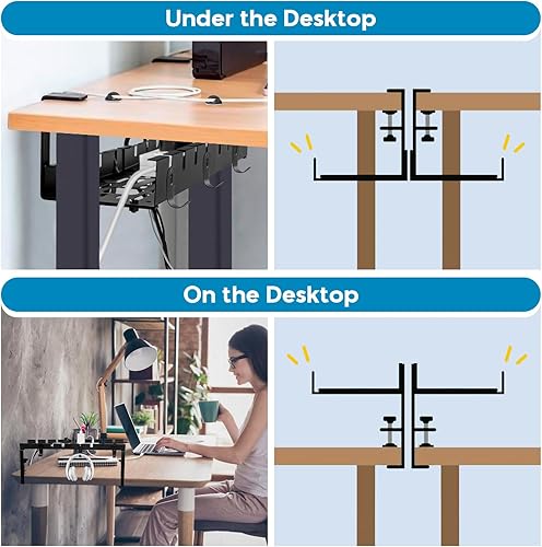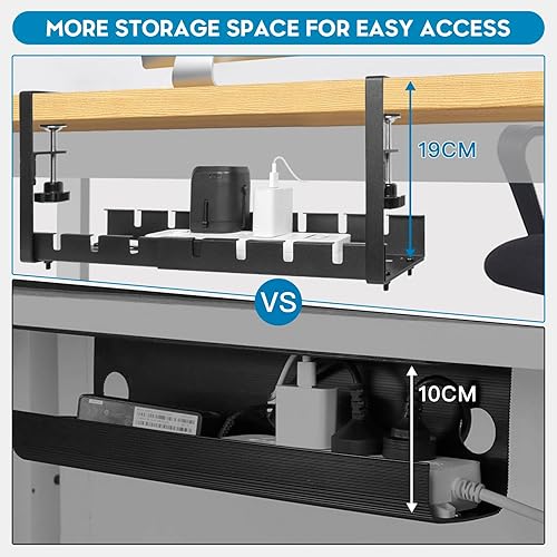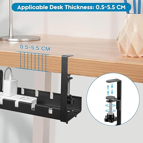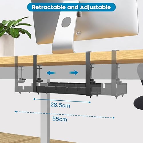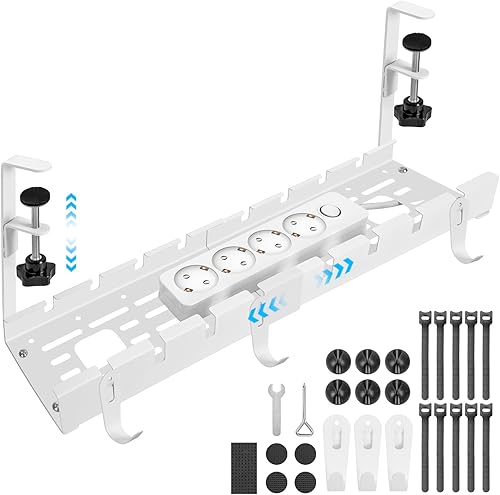 GUOOUG Kabelkanal Schreibtisch Weiß Ohne Bohren, Einziehbar 28,5-55CM Kabelmanagement Schreibtisch, Verstellbarer Metall Kabelhalter Kabelwanne Kabel Organizer Tisch, Kabelkorb Klemmbar für Büro/Heim