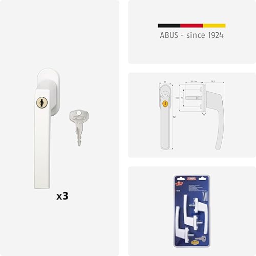 ABUS Abschließbarer Fenstergriff FG210 AB210 - Fensterknauf mit Druckzylinder, gleichschließend - ABUS-Sicherheitslevel 3 - 59486 - Silber