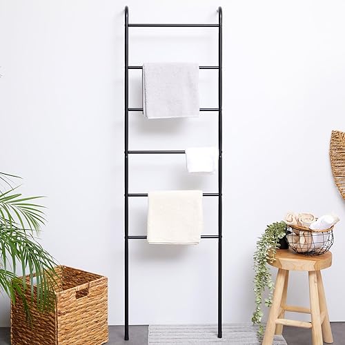 Handtuchhalter MORBIO aus Metal mit 6 Stangenl, Stabiler Handtuchständer als Leiter,Zeitlose Handtuchleiter im Industrial Stil in schwarz
