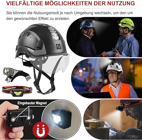 HEARMOR LED-schutzhelm ABS bauhelm Bauarbeiter Helm forsthelm Erwachsene baustellenhelm Zertifizierung EN397 und EN12492 Stoßdämpfung Eindringfestigkeit