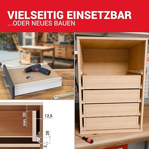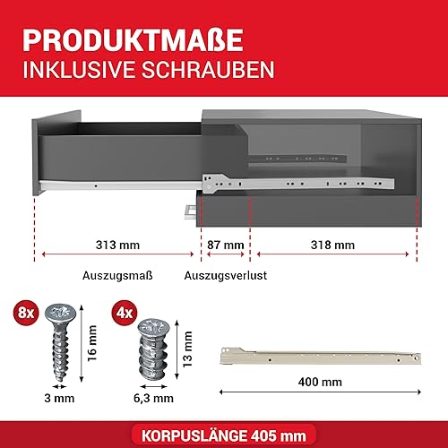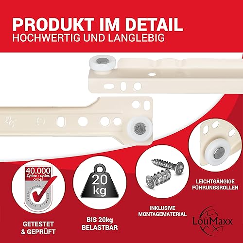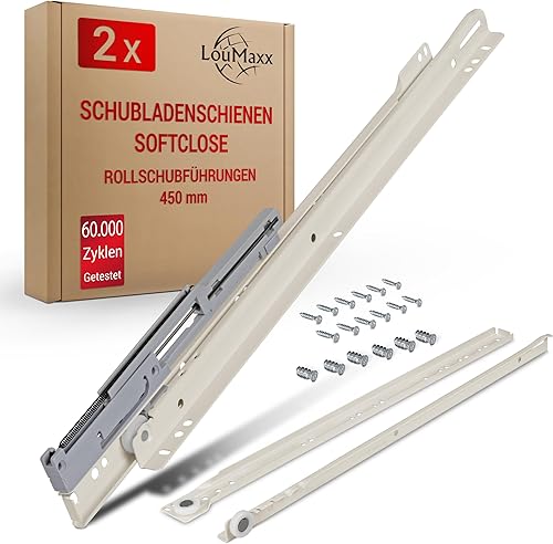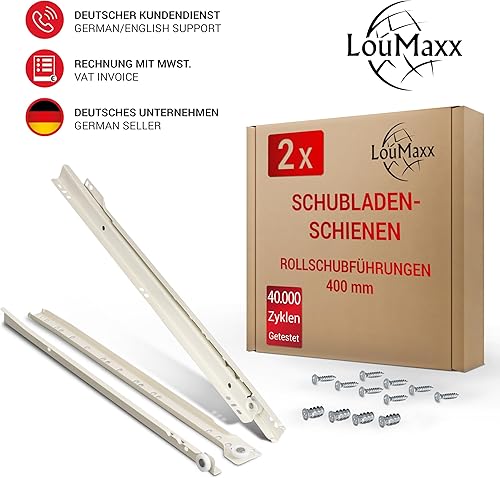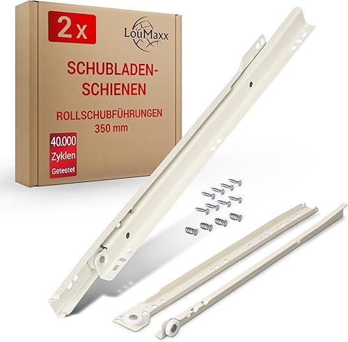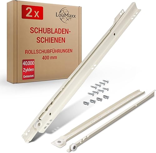 LouMaxx Schubladenschienen 400 mm selbstschließend mit Dämpfer - 2er Set (1 Paar) Rollschubführungen - Schubladen Auszugsschienen Softclose - Leichtgängiger Rollenauszug in weiß