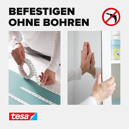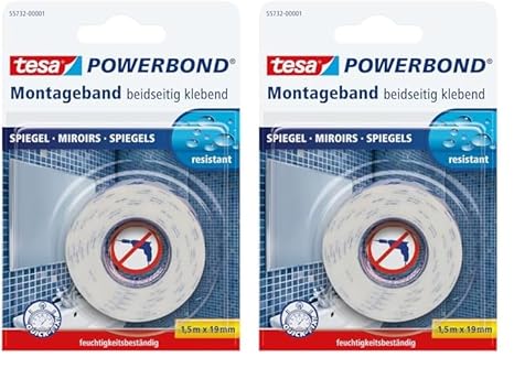 tesa Powerbond MIRROR - Doppelseitiges Montageband zur Fixierung von Spiegeln - Feuchtigkeitsbeständiges Klebeband für Bad und Dusche - 5 m x 19 mm