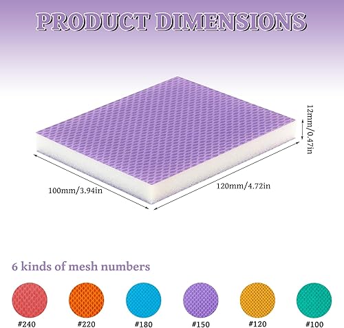 Schleifschwämme, 6 Stück Weiches Schleifschwamm Fein Körnung 100/120/150/180/220/240 Handschleifblöcke PU Schaum-Schleifpads Nass und Trocken Sandpapier für Holz Trockenbau Metall