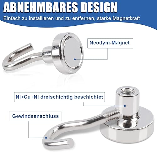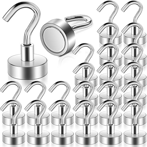 FPMYB 20 Stück Magnethaken Extra Stark Magnet Haken Neodym Magnethaken, Magnetische Haken Magnet mit Haken für Kreuzfahrt Grill BBQ Küche Kühlschränke Gadgets Eisentüren Büro