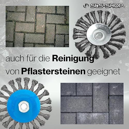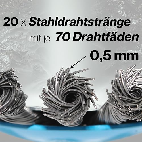 3 Stück Rundbürste Ø 125 mm, M14 x 2, passend für Winkelschleifer, zum Entrosten von Metall, Stahlbürste, Drahtbürste, Unkrautbürste Rundbürsten Set
