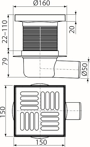 Bodenablauf 150x50 Horizontal Edelstahl Dusche Badewannenablauf