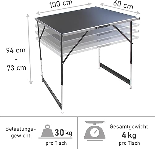 Lemodo Tapeziertisch schwarz klappbar | Arbeitstisch | Mehrzwecktisch höhenverstellbar | Flohmarkttisch 100 x 60 cm | Multifunktionstisch bis 30,0 kg belastbar