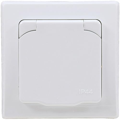 DELPHI Steckdose Unterputz IP44 Aussen Innen mit Dichtung Klapp-Deckel 250V 16A Schutzkontakt-Steckdose Badezimmer Küche mit erhöhtem Berührungsschutz Weiß
