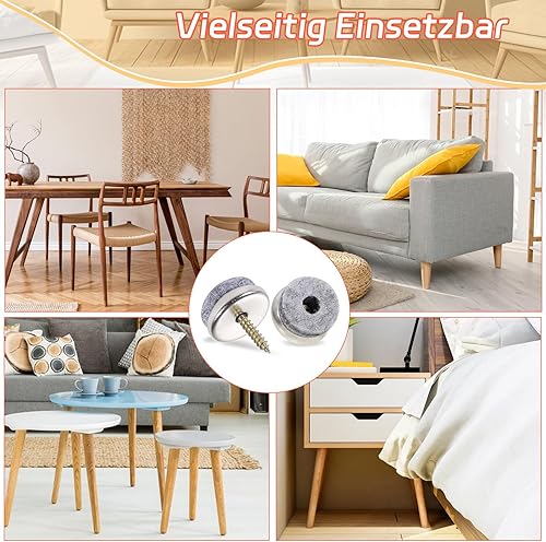 40 Stück Filzgleiter Schrauben, 22 mm Stuhlgleiter Filzgleiter Nagel Möbelgleiter Filz mit Kunststoffbox Stuhlbeinschoner für Möbel Stühle Laminat Parkett Fliesen (Grau)
