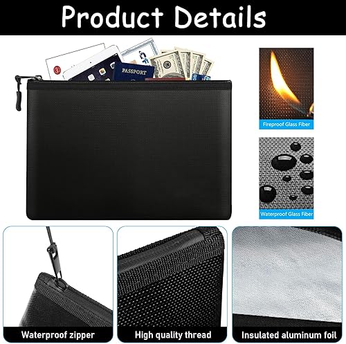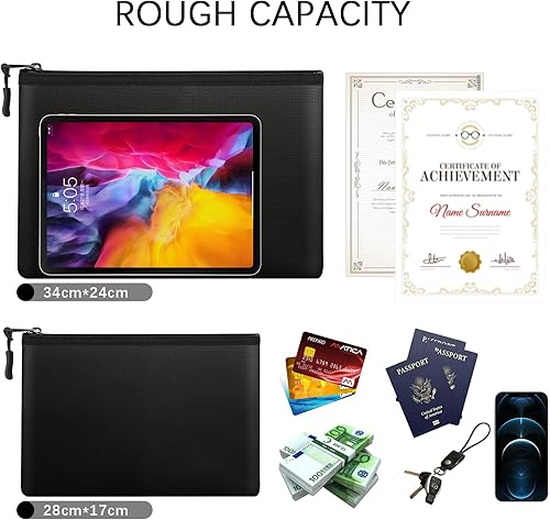 2 Stück Feuerfeste Dokumententasche A4/A5,Feuerfeste Geldtasche,Feuerfeste Wasserdicht Tasche (17cm*28cm,24cm*34cm) für Passport,Dokumente,Rechnungen,Bargeld (Stil 1)