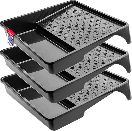KADAX Farbwanne, Lackierwanne, Farbschale aus Kunststoff, Maler Lackierschale mit handlichem Griff, große Lackschale, leichtes Malerzubehör, Lackwanne, Malerbedarf (3, schwarz)
