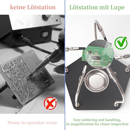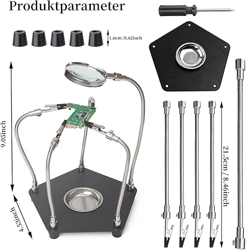Dritte Hand Löten, Platinenhalter mit Lupe zum Löten, Modellbau Zubehör 4 Arms Helfende Hand Löten Leiterplattenhalter Werkzeug für Handwerk Schmuck Hobby Werkstatt