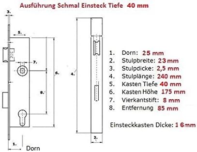 EDELSTAHL Gartentür Einsteckschloss SCHMAL 40 mm Schloss Dornmass 25 mm Rohrrahmenschloss Tor Tür Schloss